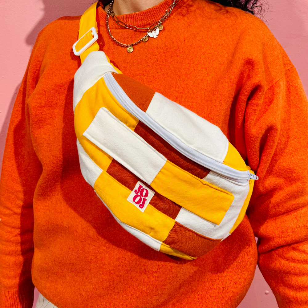 Chez Jooj, nous travaillons uniquement avec des tissus de seconde main, ce qui rend chaque création unique : les couleurs peuvent légèrement varier par rapport aux photos.
