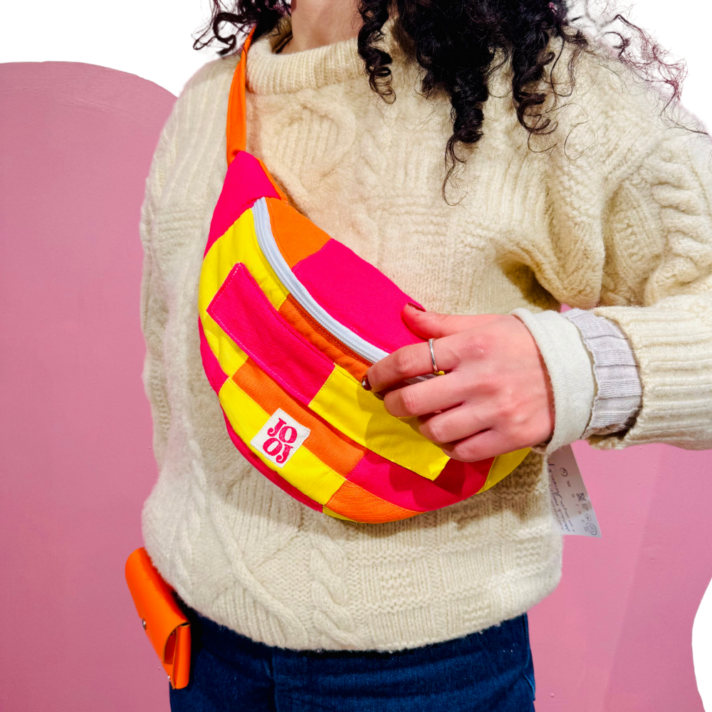 Chez Jooj, nous travaillons uniquement avec des tissus de seconde main, ce qui rend chaque création unique : les couleurs peuvent légèrement varier par rapport aux photos.