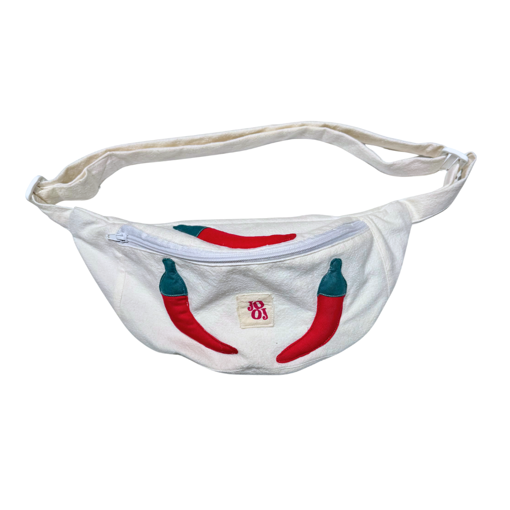 Chaque pièce est unique ou en série très limitée, fabriquée à partir de tissus de seconde main (stocks dormants, rideaux, nappes, vêtements…). La doublure est réalisée dans d’anciens linges de maison et les motifs sont rembourrés pour un effet dodu. L’étiquette est également upcyclée, tamponnée sur tissu coton.