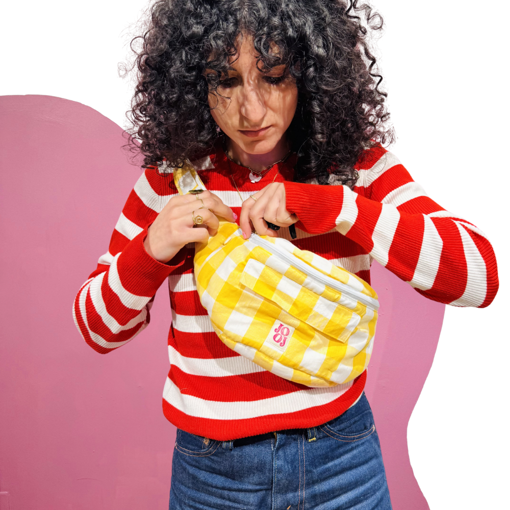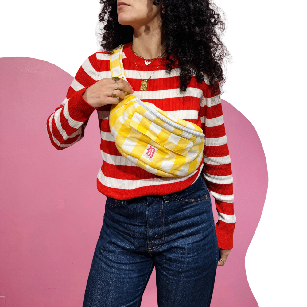 Chez Jooj, nous travaillons uniquement avec des tissus de seconde main, ce qui rend chaque création unique : les couleurs peuvent légèrement varier par rapport aux photos.