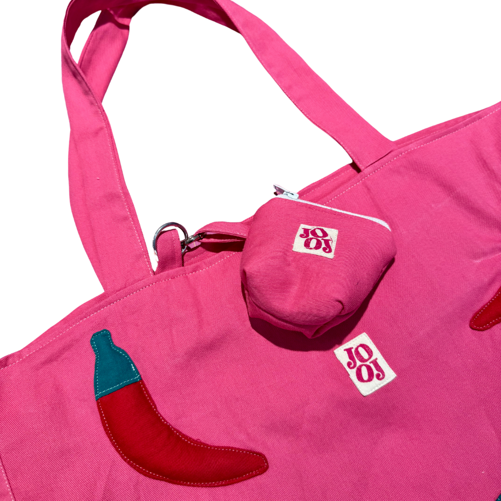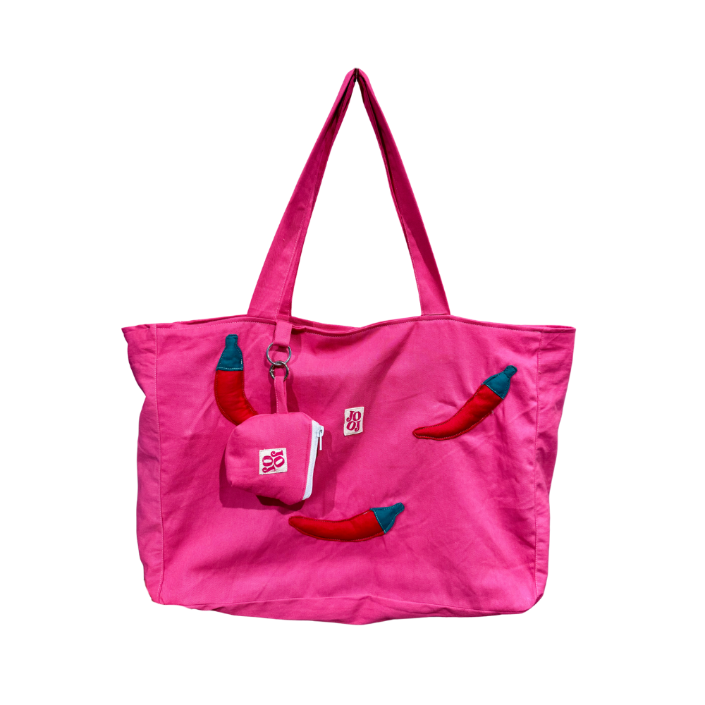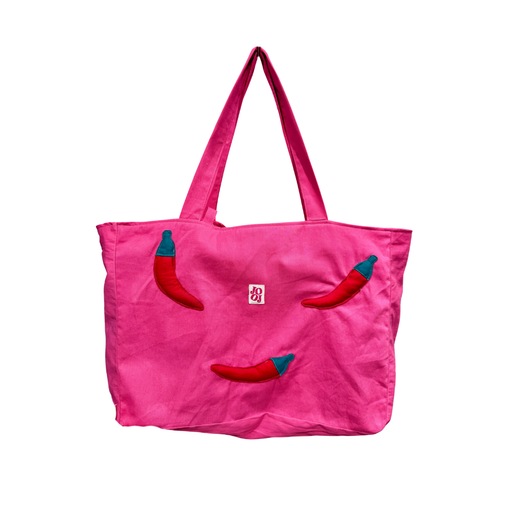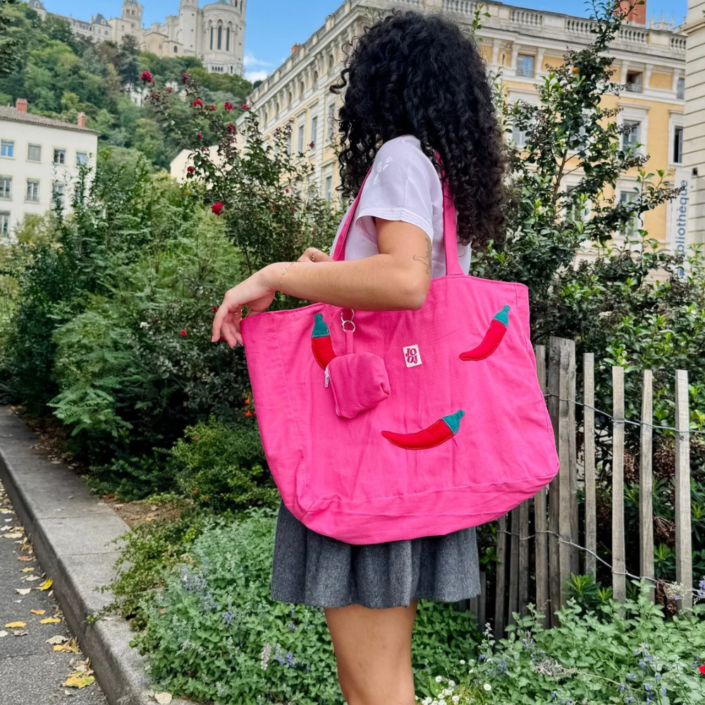 Grand sac rose à motifs piments 🌸