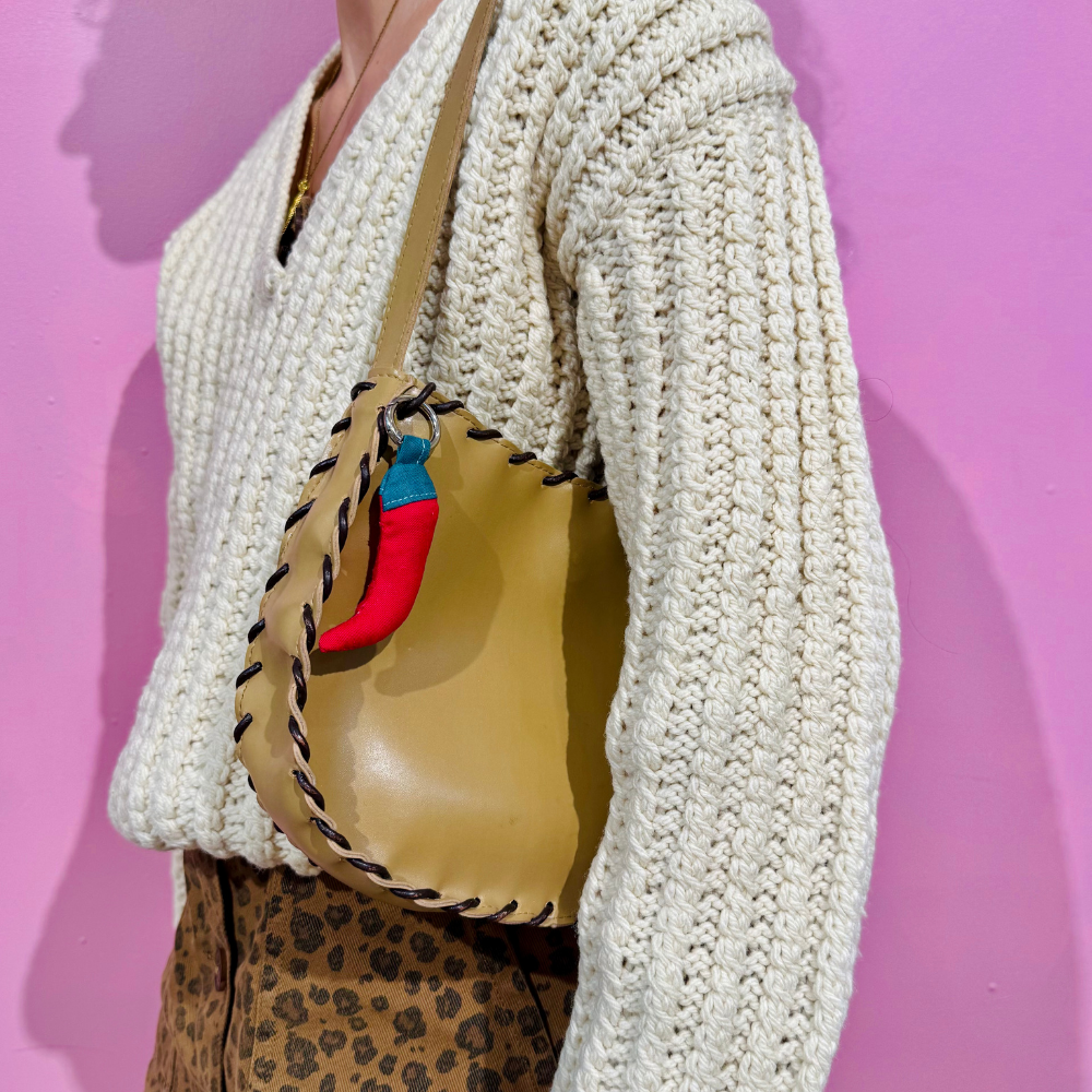 Chaque porte-clé est upcyclé : les tissus viennent de seconde main et le rembourrage est recyclé à partir de coussins ou peluches abîmés.