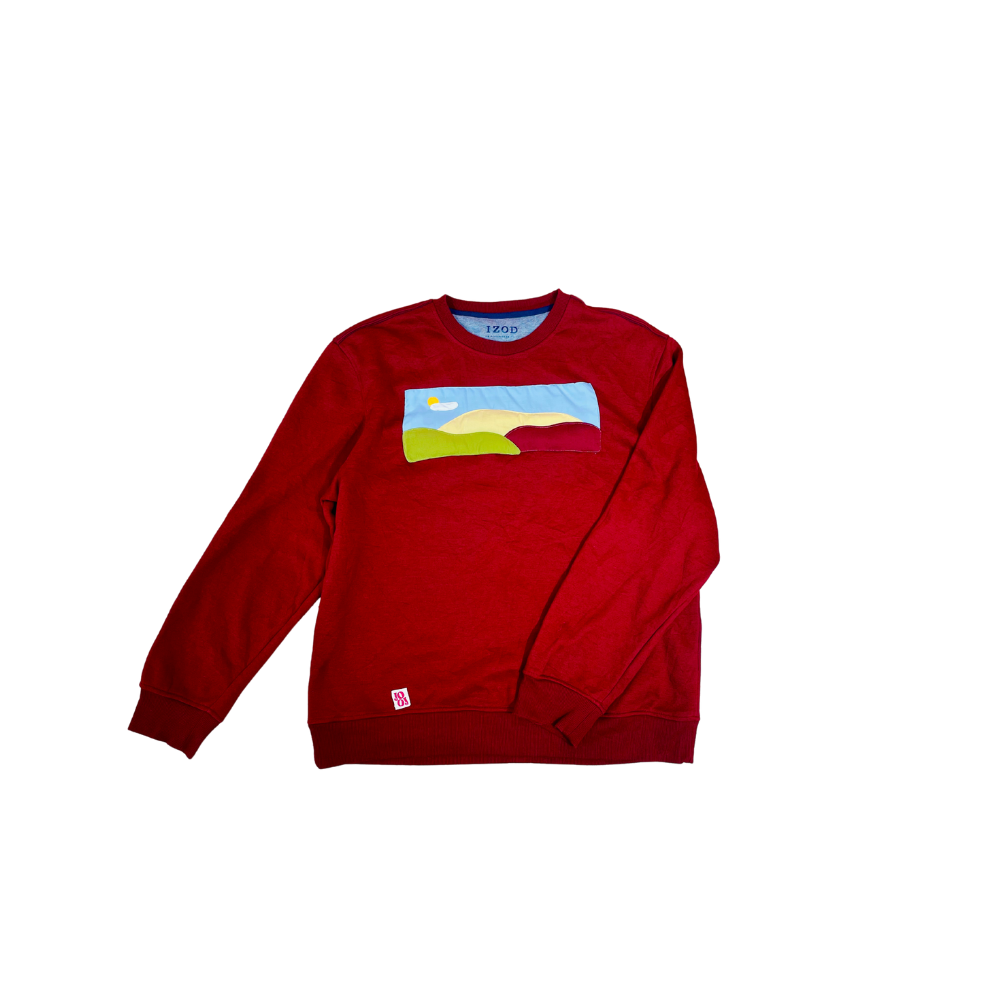Les pulls customisés sont tous chinés à la pièce : ils proviennent de Vinted, brocante, ou fournisseur seconde main.